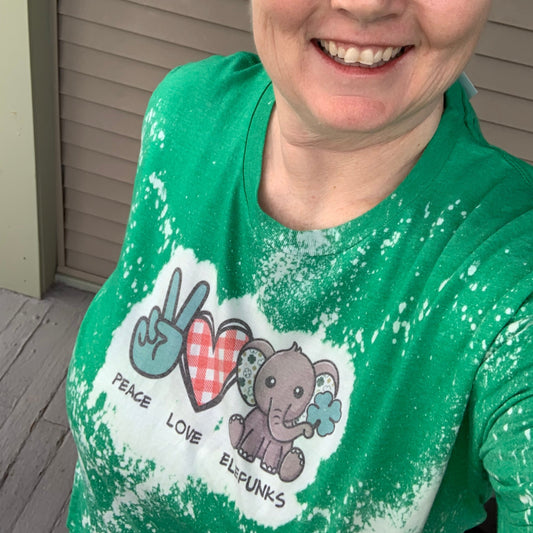 Peace Love & Elefunks - St Patrick's Day Bleached Tee