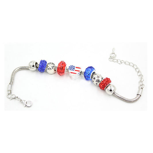 Patriotic Bracelet with Red & Blue Crystal Beads