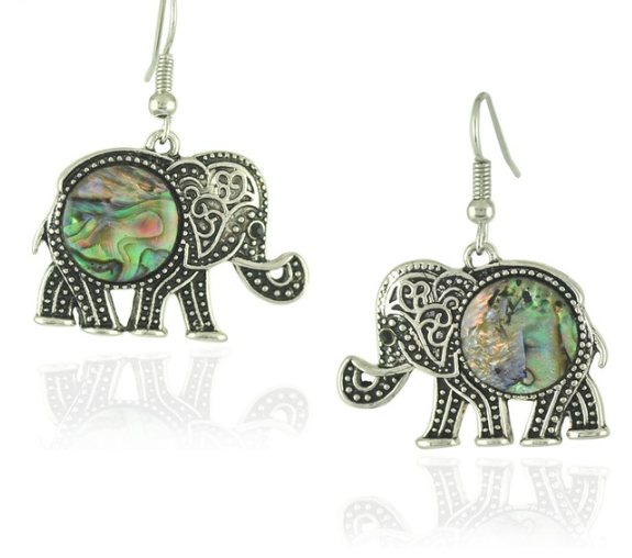 Make a statement with these elegant earrings. Mandala-inspired design on the elephant, with shell inlay features.