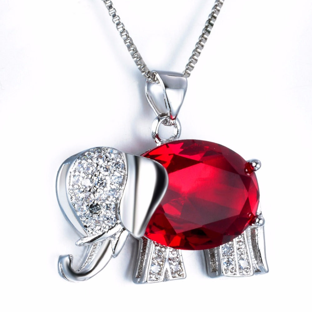 Tiny elephant hangs on a delicate chain. The Red or Blue crystal and the rhinestones catch the light and make her sparkle.