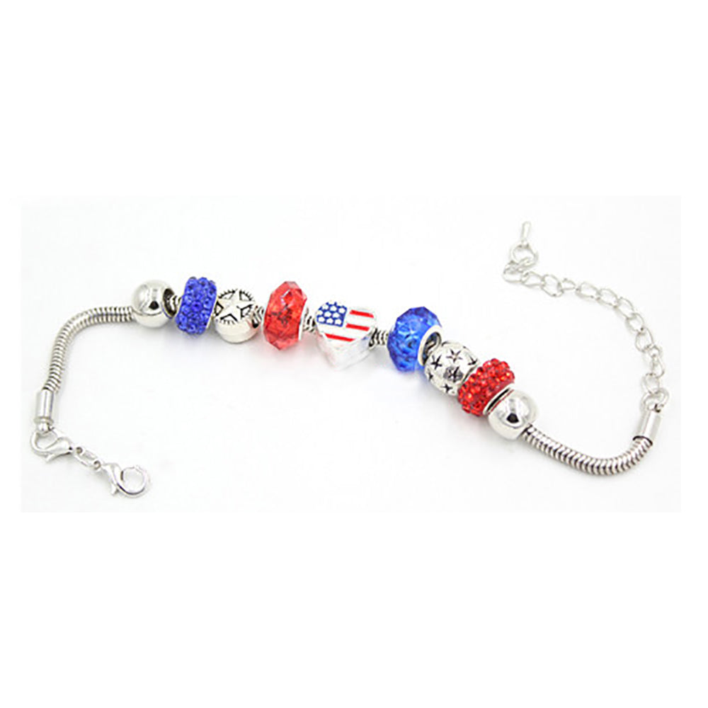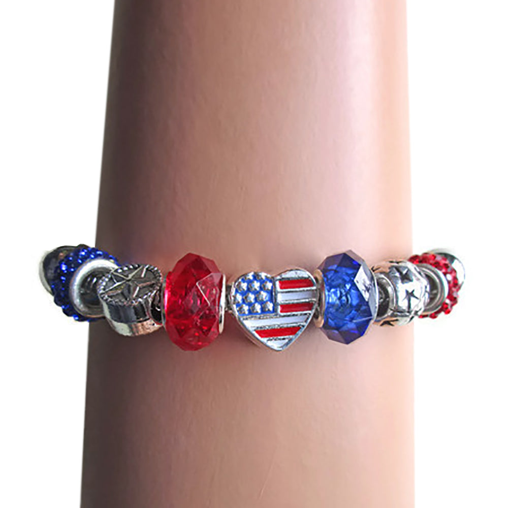 Sliding charms in Red and Blue accent a heart-shaped U.S. Flag.