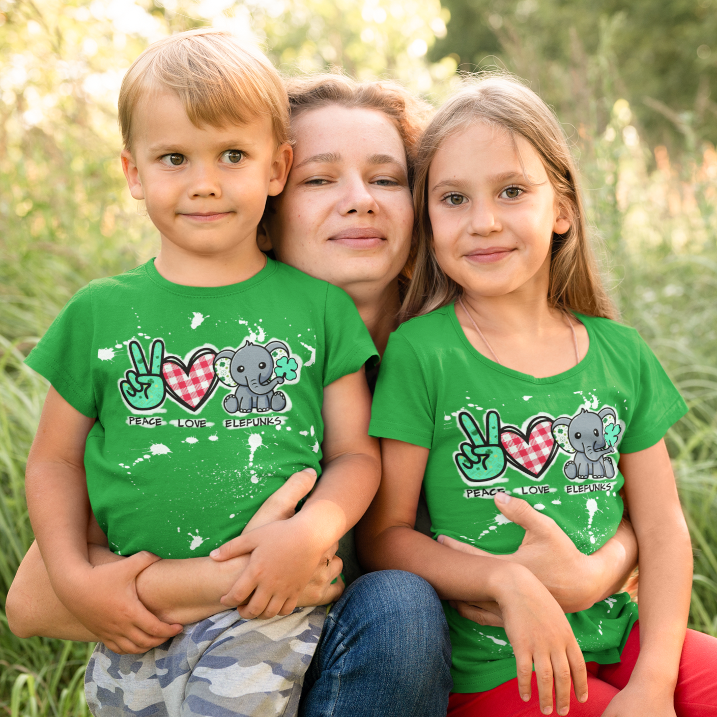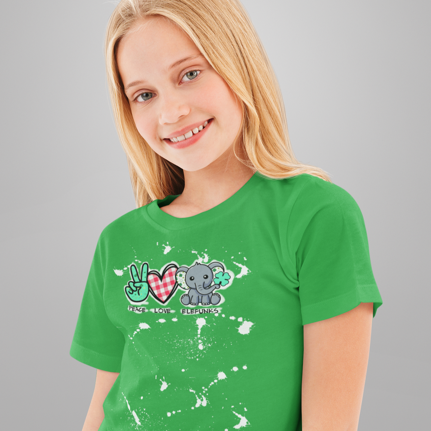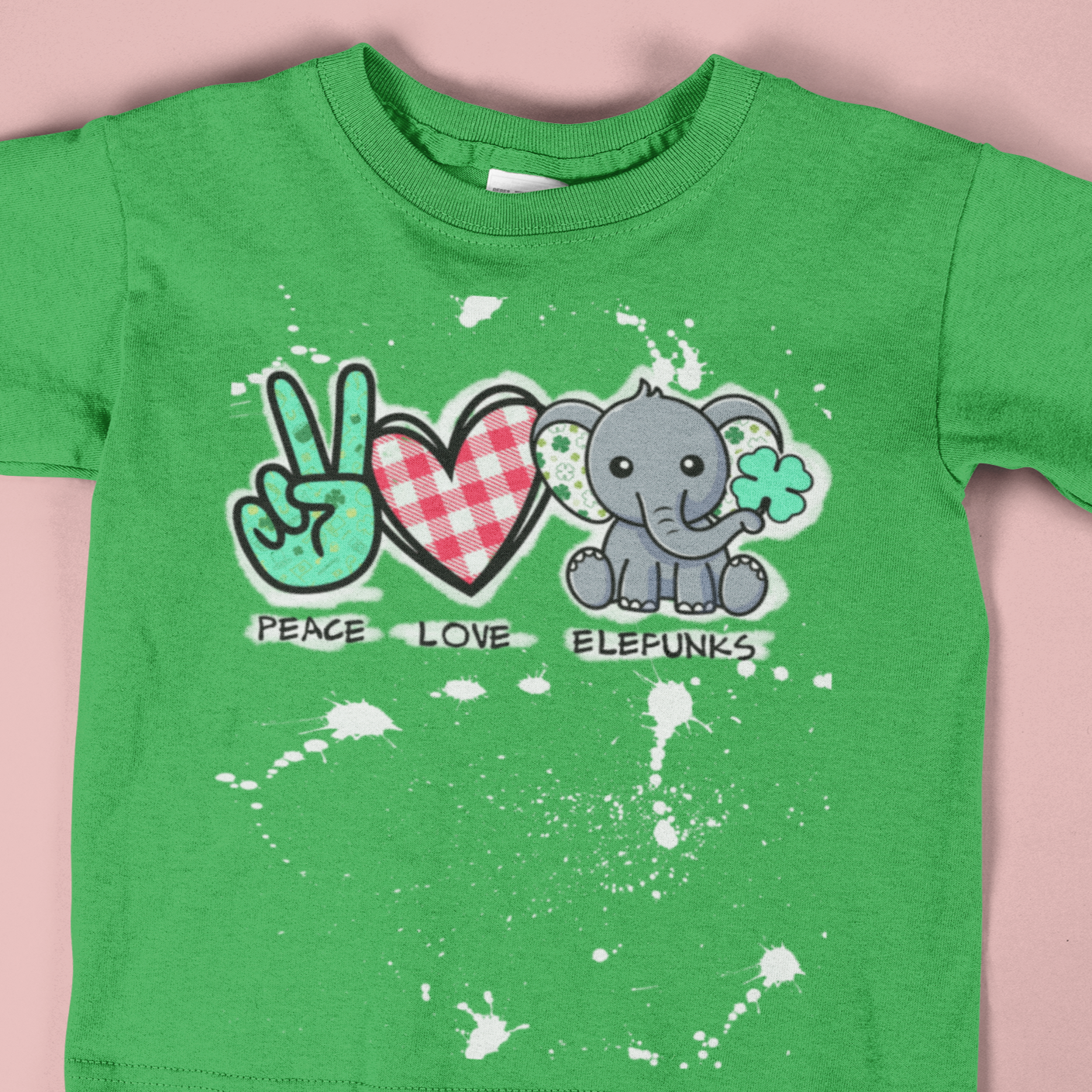 Peace Love & Elefunks - St Patrick's Day Bleached KIDS Tee