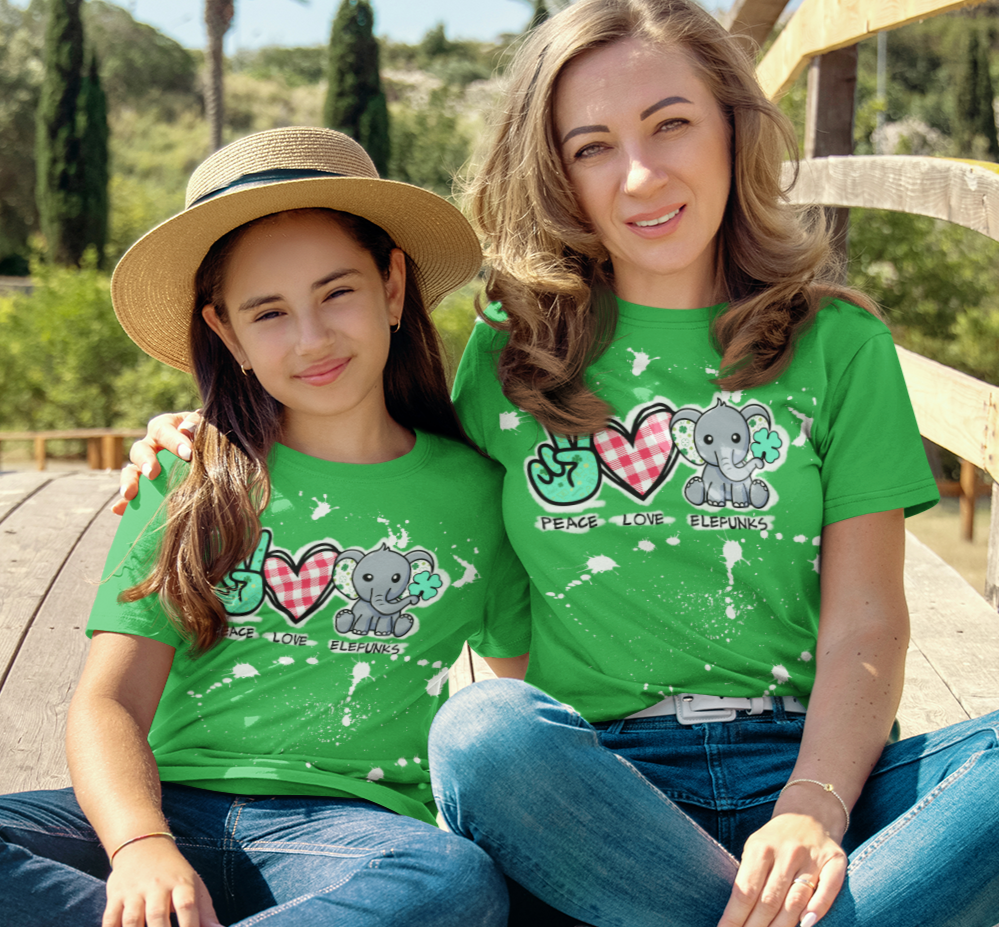 Send your mini mischievous leprechaun off to the St. Patrick's Day parade in style with our Peace Love & Elefunks bleached KIDS tee! This fun and fresh apparel is sure to make you the coolest mom on the block!